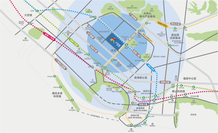 交通上同样优势显著,位于5&12号线双地铁上盖,2站抵宝安中心,4站抵前海,更坐拥全国首个集空港、海港、高铁、城际铁路、城市轨道、高速公路于一体的六位一体国际交通(信息来源:滨海宝安),为企业商务往来按下“加速键”。