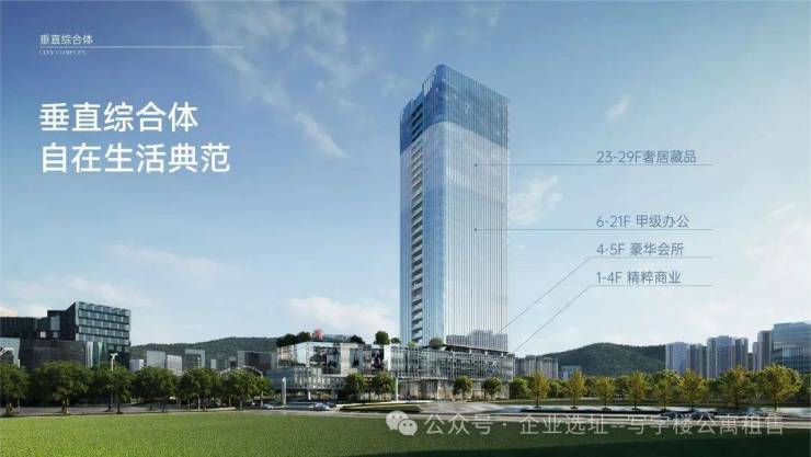 集合云端居住、奢雅会所、精粹商业、甲级办公为一体的垂直综合体,生活&休闲、社交&事业,悦然相逢,自在切换。