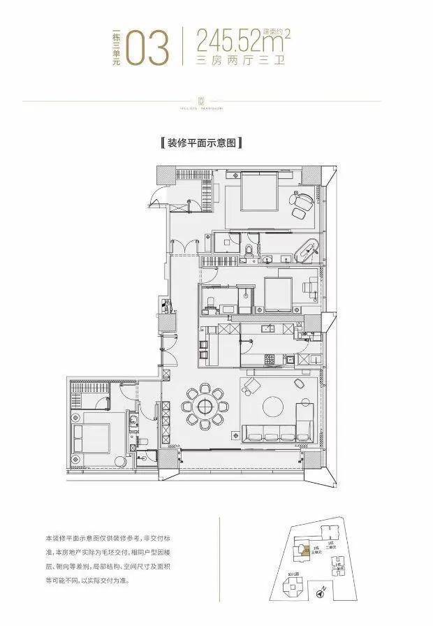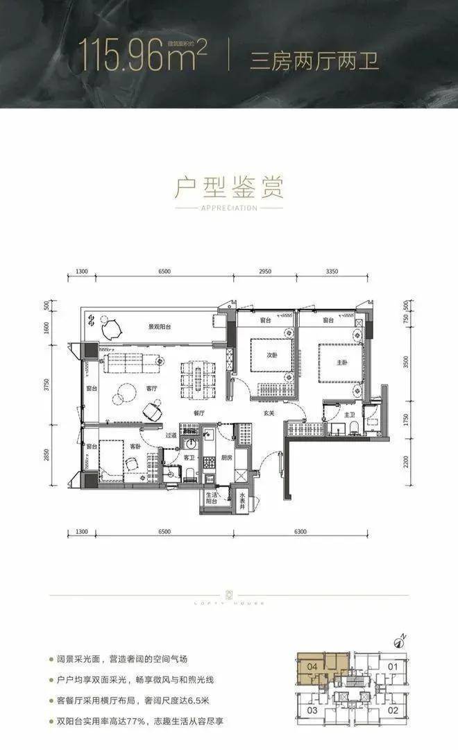 3栋由酒店、商务公寓、人才住房组成,40层加地下4层(含一层半地下室)楼高172.85米。本期销售住宅有260户,其中户型套内建筑面积小于90㎡为230套,占比88.46%。
