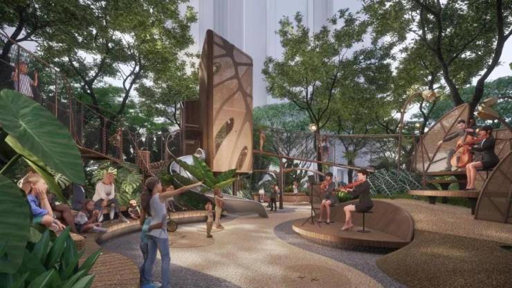 内部以62公顷主题公园及车辆段上盖公园,构建湖泊、湿地、花卉、文体4大主题场景;营造约200公项城市中芯公园,内外皆园的生态环境,构筑24小时公园生活美学新主场。