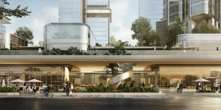 在垂直维度打造了一套过度城市与住区的 “城市甲板” 系统:将城市商业,社区配套服务,文化活动等置于底层,以模糊的边界与公共的功能布局与城市相连。