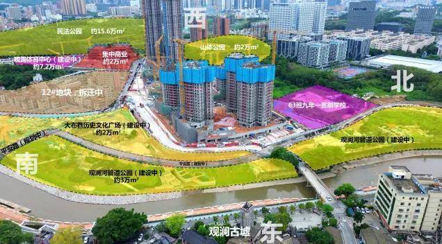该批产品为08地块,位于观澜河旁,北面是63班九年一贯制学校、南面是历史文化广场、东面是观澜河碧道公园,与观澜古墟一河之隔,三面环景、无遮挡,也是整个大城景观面最好的位置。