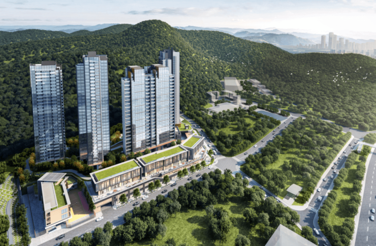 项目由4栋塔楼组成,目前已经全部封顶,整体与山呈现双环抱格局,不仅尽量避免了对视、充分保证了室内采光,还让每一户都能享受绝版塘朗山景观。