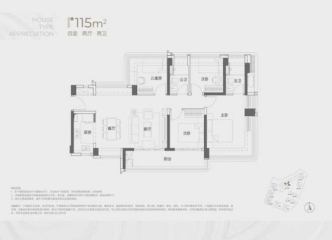 建面约115㎡4房2卫
