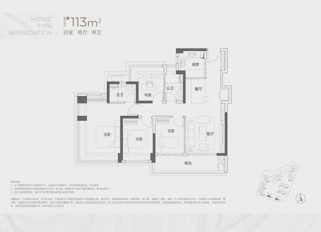 建面约113㎡4房2卫!