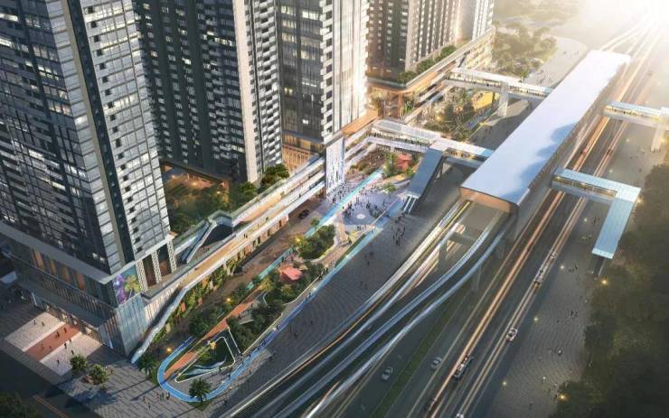 塘城壹号花园充分利用上塘核心的区位优势和TOD的驱动优势,打造高密环境下的立体枢纽。通过高效集约的布局规划,将完善的配套有机结合,并在平接轨道站点的三层设置连接住宅、办公、商业的空中大堂,实现站城一体、无缝接驳。在此基础上融入便捷交通场景、城市空间场景、日常闭环场景、超级中心场景、都会办公场景五大生态场景,实现传统TOD到TOD+的进化。