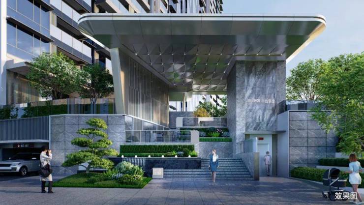 三重尊奢归家,主入口前设置迎宾广场,拾级而上,入社区后景致相依,酒店式的归家奢华大堂,营造归家尊崇仪式感。