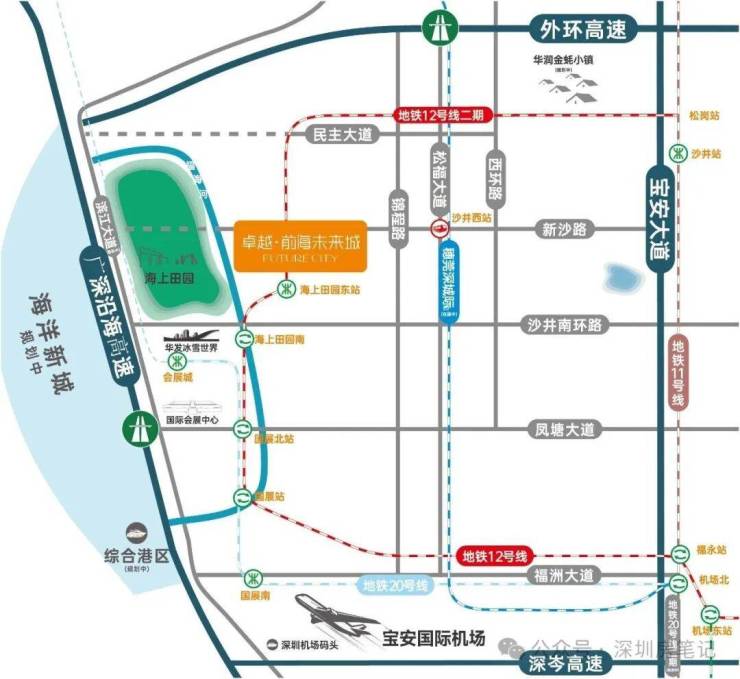 自驾也很方便,4高速(广深沿江、京港澳、沈海、外环高速)、3快速路(滨江大道、广深公路、宝安大道)。