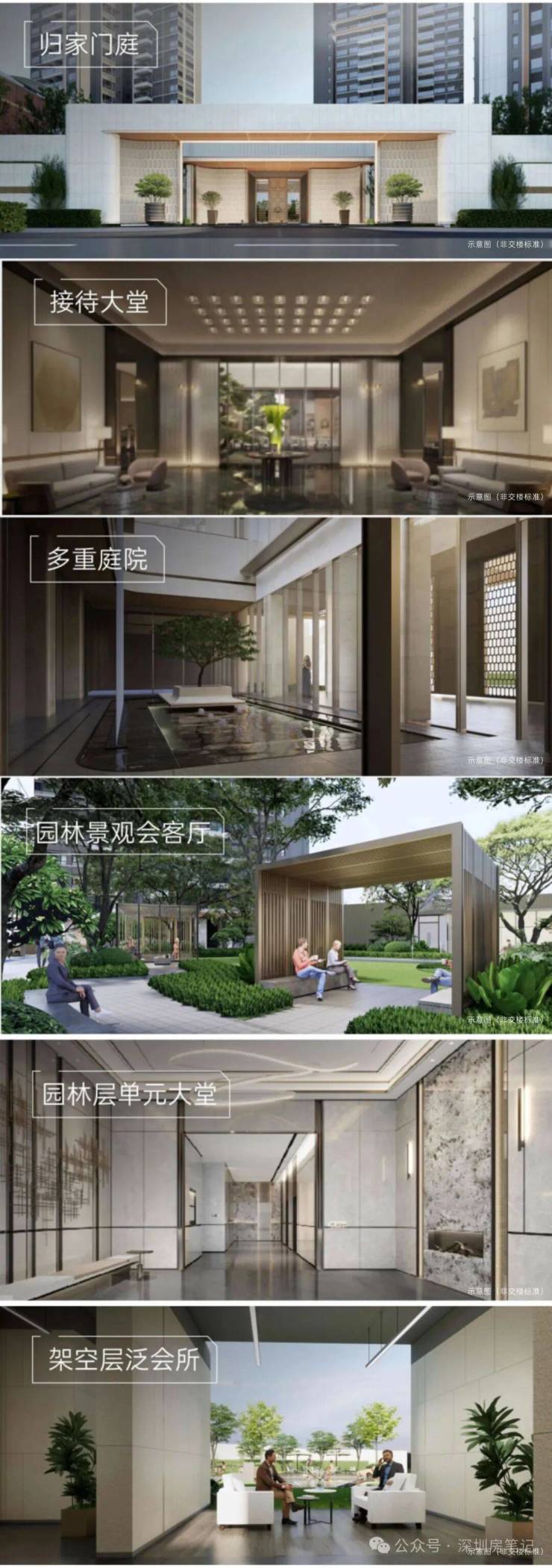 多重归家礼序:从外到内有六重归家仪式感,分别是仪式门廊→接待大堂→下沉庭院/会所→园林景观会客厅→架空层泛会所→园林层单元大堂。每次回家都像进酒店一样有面子。