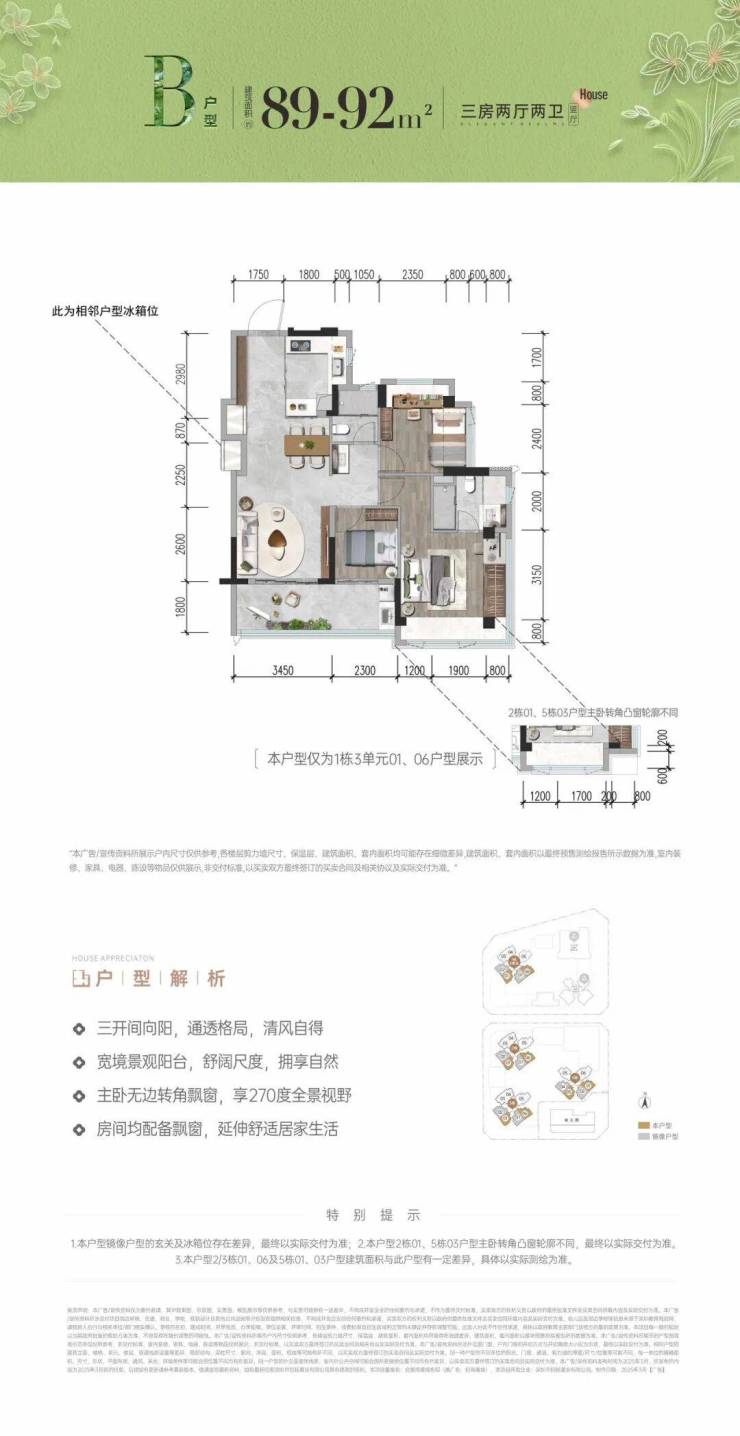 01/02户型89㎡3房2卫 总价区间389-451万