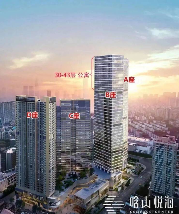 AB栋公寓43层,C栋住宅30层,D栋回迁房
