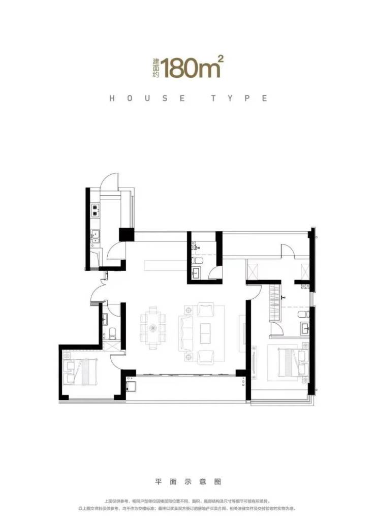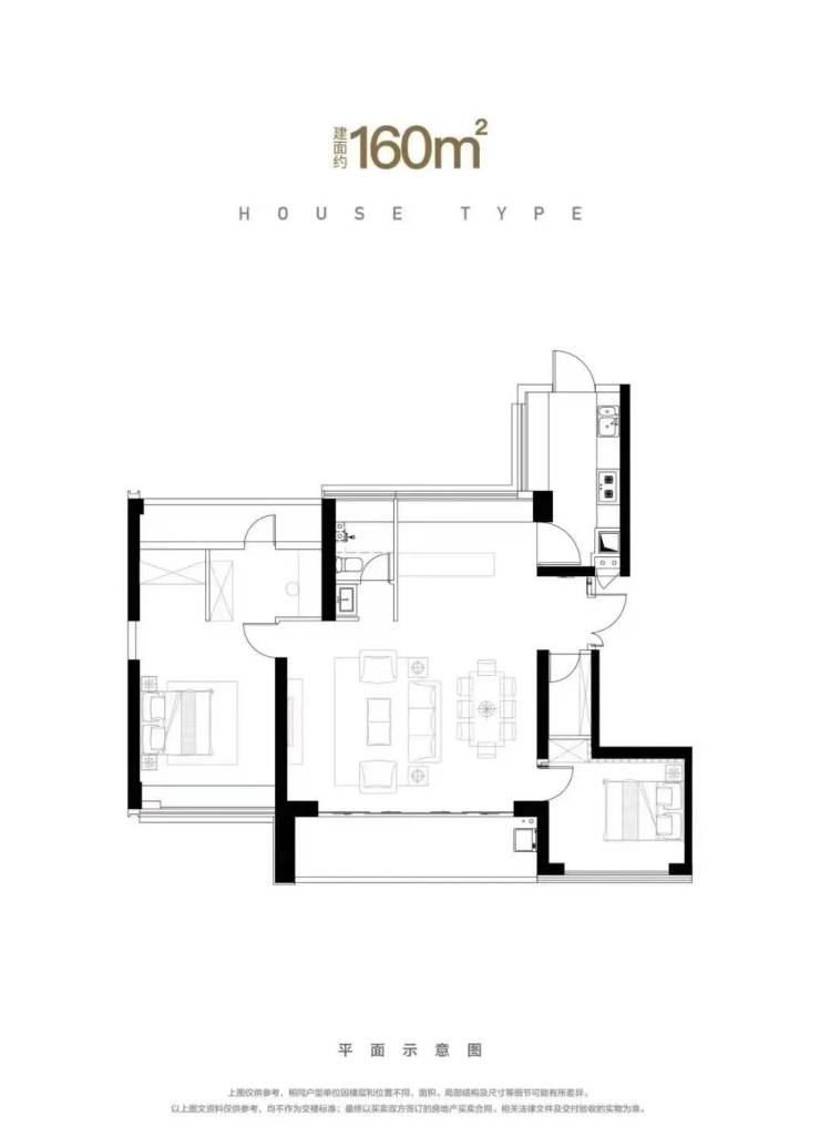 住宅面积:160/180平/232--314平(三至四房)