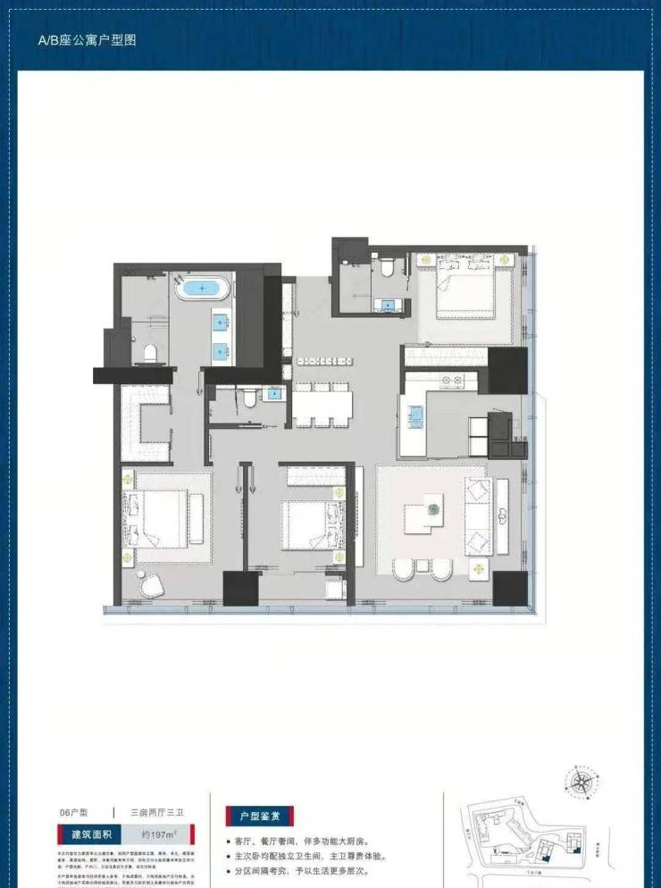 公寓197平户型三房两卫: