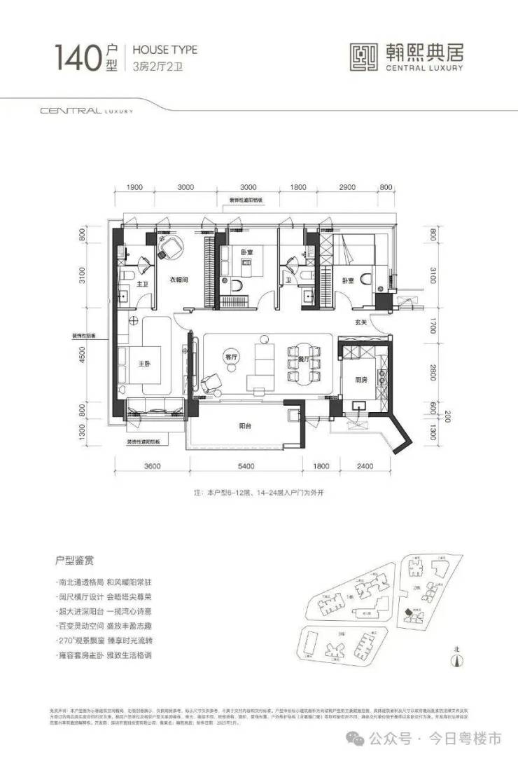 翰熙典居的住宅建面户型约105-120-140㎡3-4房,新规设计,带装修交付。105㎡三房实得面积堪比传统120㎡!