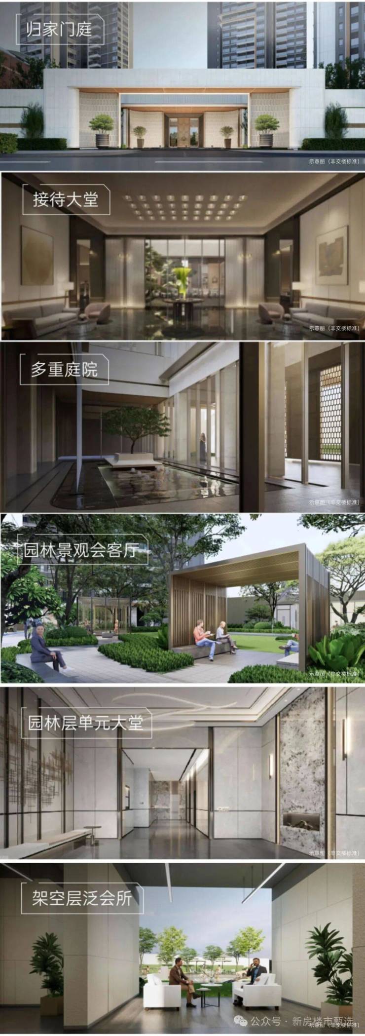 仪式门廊→接待大堂→下沉庭院/会所 →园林景观会客厅→架空层泛会所→ 园林层单元大堂