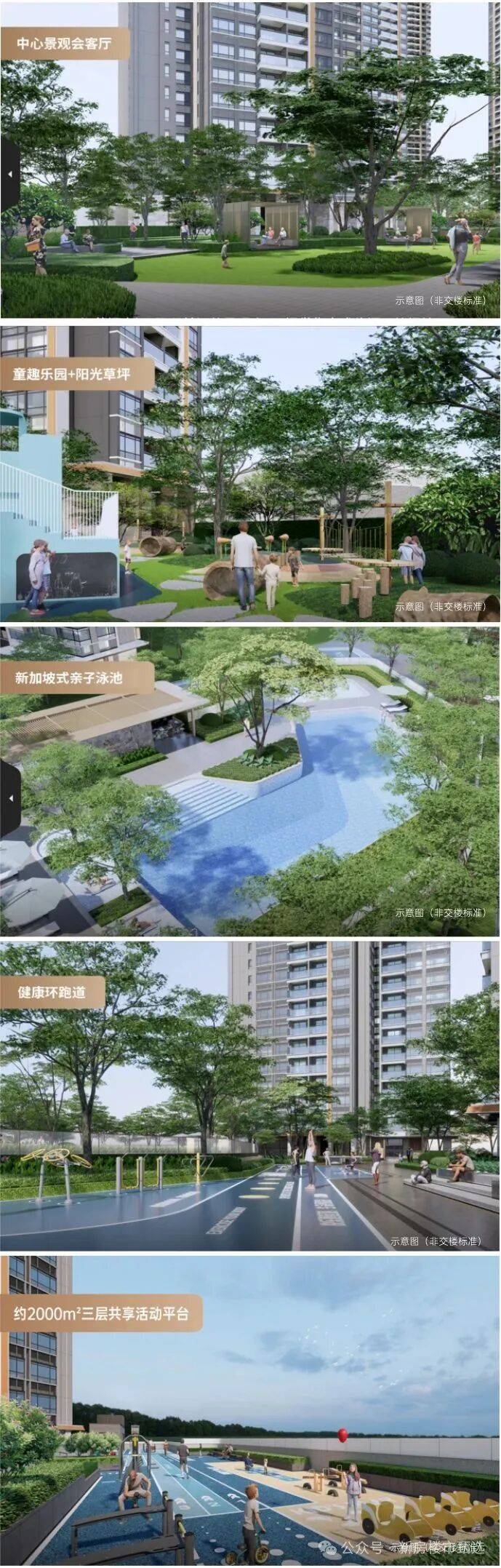 约4.2万㎡都市全龄乐活园林,涵盖童趣乐园、屋顶活动平台、亲子泳池、环氧跑道等功能区,构建全龄社交生活主场