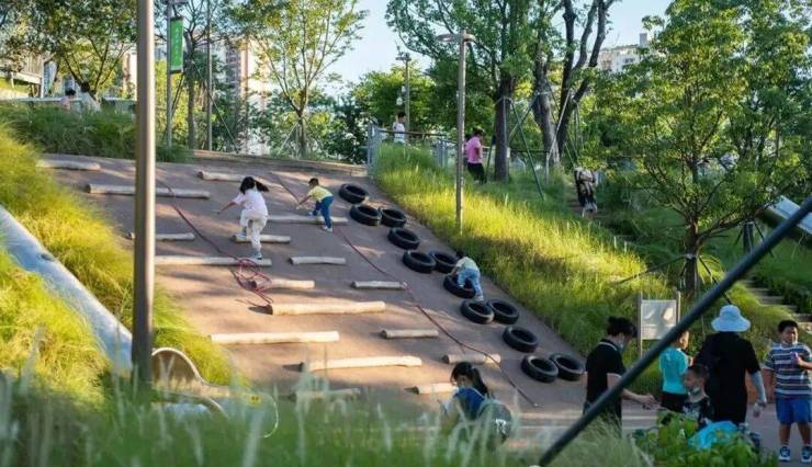成长探险乐园:游乐区与园林结合,打造科普花园,设计攀爬树屋、滑梯、秋千、趣味沙坑、家长看护区、婴儿车停放区等