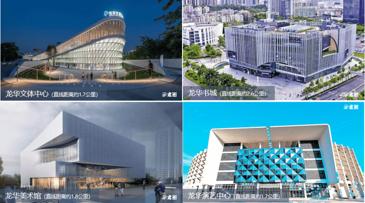 直线距离3公里范围内,可享龙华书城、龙华艺术中心、龙华文体中心、龙华美术馆、龙华演艺中心等文体配套;