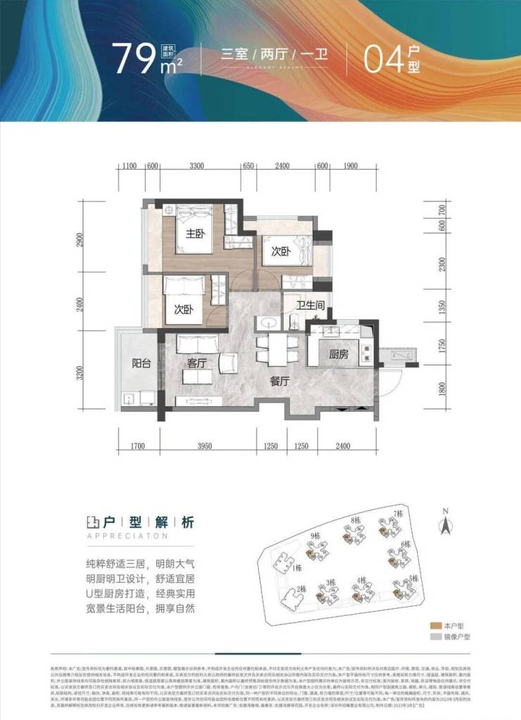 建面约79㎡ 3房2厅1卫:南北通透3房,功能分区合理,全凸窗设计,三分离卫生间