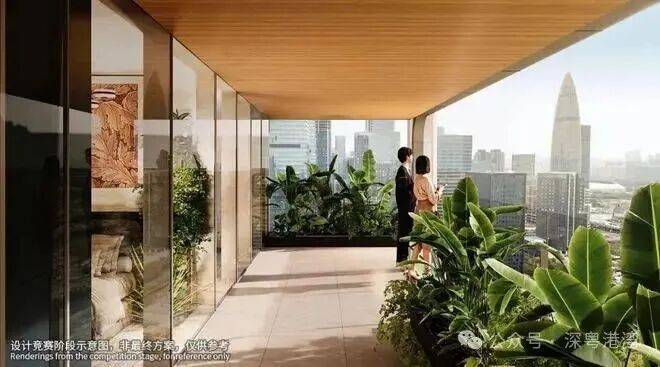 超高层观景面采用落地玻璃,深圳湾视野开阔,无需阳台即可观赏海景。