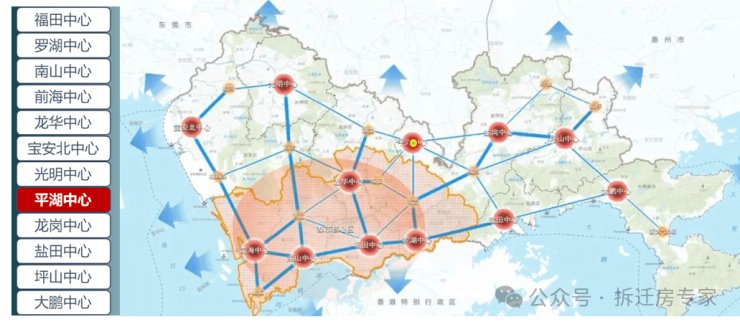 平湖中心与福田中心、南山中心等共12个城市中心将延续深圳多中心、组团式的空间结构,形成“一核多心网络化”的城市开发新格局。