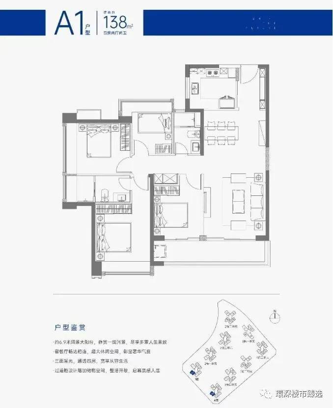 南向景观阳台,面宽达约3.8m,采光面充足,阳光清风不缺席。视野开阔无遮挡,大美龙岗河景、城景、园景尽收眼底。