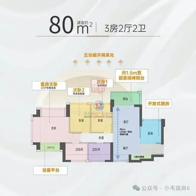 80㎡是本批次产品中唯一设计为南北对流格局,而且是整体横向采光,位于1栋,仅有2条腿,朝向社区内部园林相对静谧。