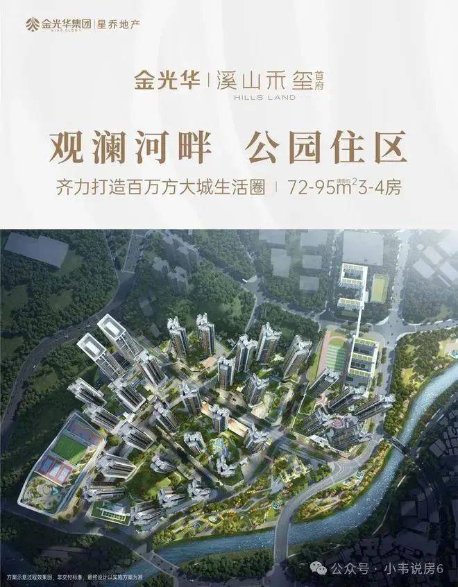 金光华溪山禾玺二期总建面约120万㎡,集住宅、商业、教育、文体和生态环境于一体。首发地块溪山禾玺首府已入市,454户建面约72-95㎡3-4房,备案均价约4.4万/㎡;此项目也还有大量的住宅货源,并与观城项目邻近。