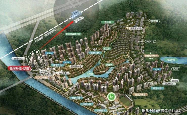 星河丹堤属于惠阳高铁站附近的热盘,距离惠阳高铁站约1.5公里,位于惠阳淡水老城区以及大亚湾西区的接壤位置,项目总占地约150万平,总建筑面积约260万平,项目整体由独栋,双拼,联排,叠院,洋房以及高层住宅组成!