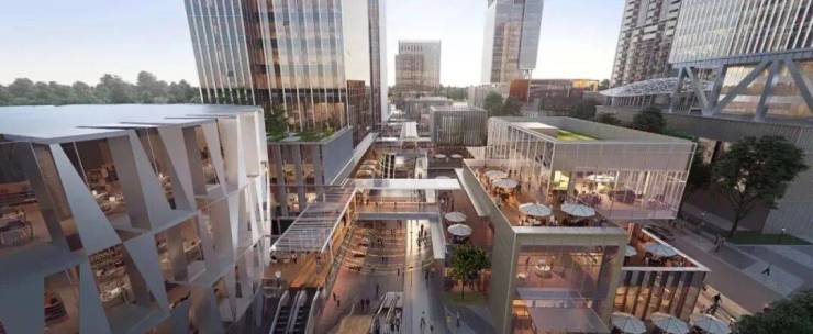 地下空间联通地铁站、公交始末站,空中连廊通达独栋办公、约8万㎡商业,互联互通设计,工作和生活随心切换,且可为商墅多入口引流。