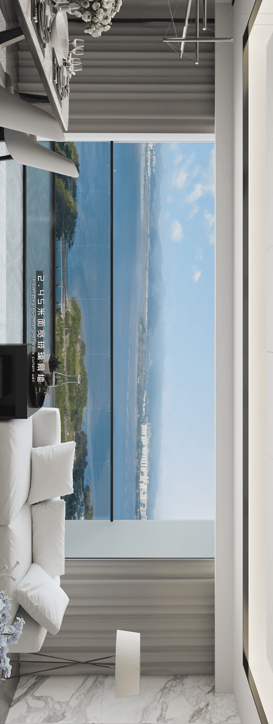 也能充分将丰富自然采光引入室内,实现Imax剧院式视野,无言的霸气。中性的暖白色铺就温馨舒适的居家氛围。