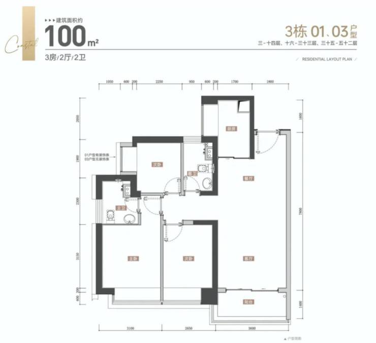 【产品面积段】100-120-143-188㎡3-4房