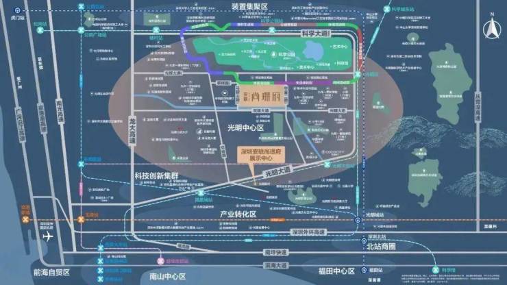 高速:从项目出发沿双明大道进入光明大道,可直接上龙大高速和南光高速;此外,外环高速也可贯穿深圳东部及北部地区