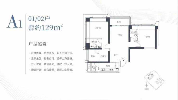 1栋1单元户型图 01/02、03/06户为129㎡,04/05户为124㎡,均为3房2卫