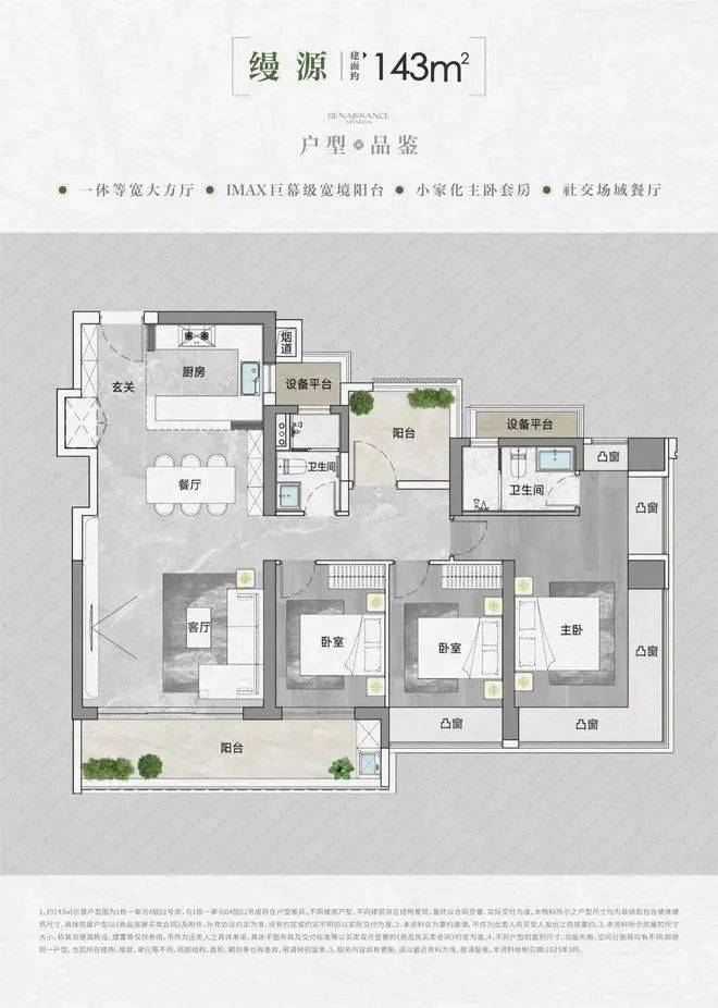 面积与户型:推售房源涵盖建面约90-95-105-143㎡的3-4房,共298套可售房源。其中,95/105㎡三房户型以朝东为主;90㎡三房户型朝西;143㎡四房大户型东南朝向。