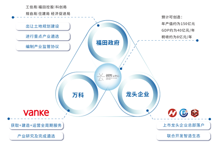 万科创智云中心牵手福田区政府及三家智能制造龙头企业(禾望电气、诺德股份、天源迪科),全面激活“政府+企业”的深度联动,促进智能制造产业集聚及高质量发展