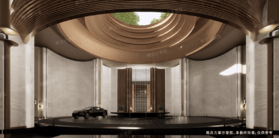 匠造「地下落客﹣首层迎宾﹣上层漫游」创新三重立体归家礼序,将东方吉祥寓意融入归家动线。主入口东向而开,承紫气东来祥瑞,约9米挑高车马厅,蕴九五至尊之吉,藤植造景藏八方来财,圆穹顶纳天国地方格局,其下圆形水景藏风生水起之兆。每步皆有光影随行,步步藏礼,层层见境,归家即归心。