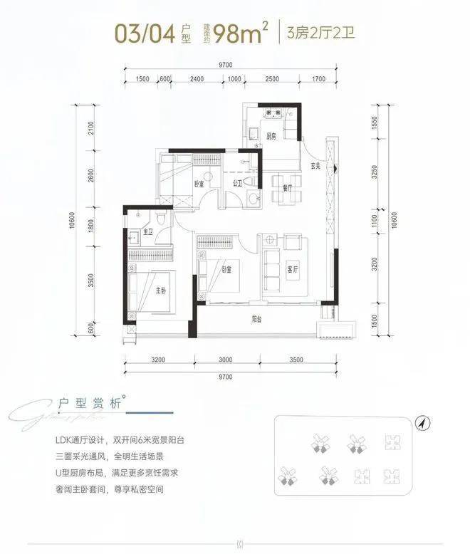 建面约98㎡是传统竖厅动静分区格局,客厅进深7.55米(不含阳台),开间3.5米,配有6.5米宽景阳台,主卧13.18㎡(不含主卫和飘窗),客厅空间变化不大,但厨房和卧室空间要好很多,居住的舒适性会比较好。