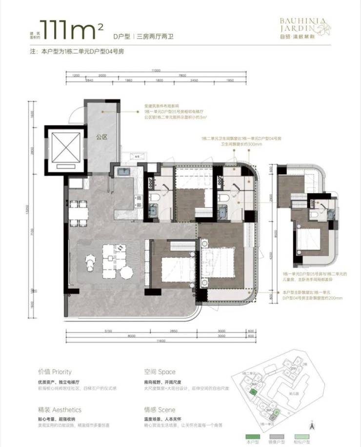 户型:新规设计、高使用率,规划主力为3-4房产品。