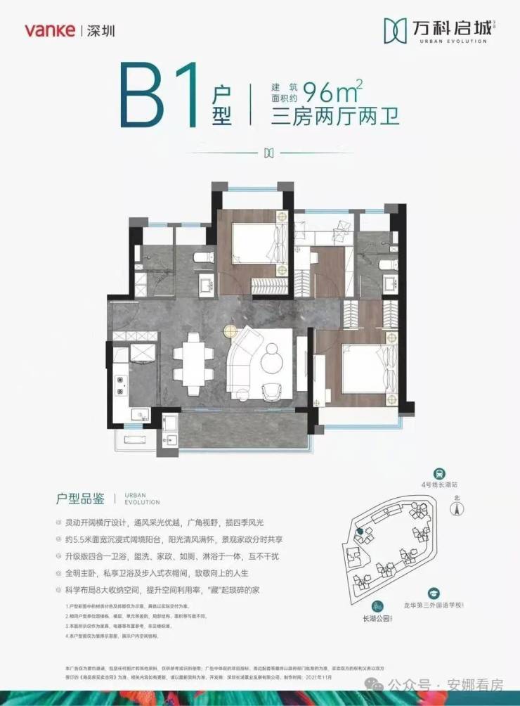 项目距离4号延长线长湖地铁站比较近,步行约500米,已于2020年10月28日开通运营;两横两纵:项目3公里范围内主干道:两纵(梅观高速,观澜大道),两横(沈海高速,外环高速),4条主干道可直接或间接对接坂雪岗大道、布龙路、留仙大道、福龙路、北环大道、梅观路等。