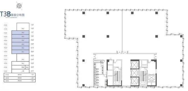 T3B栋建面:10345㎡(办公17本证,商业2本证)