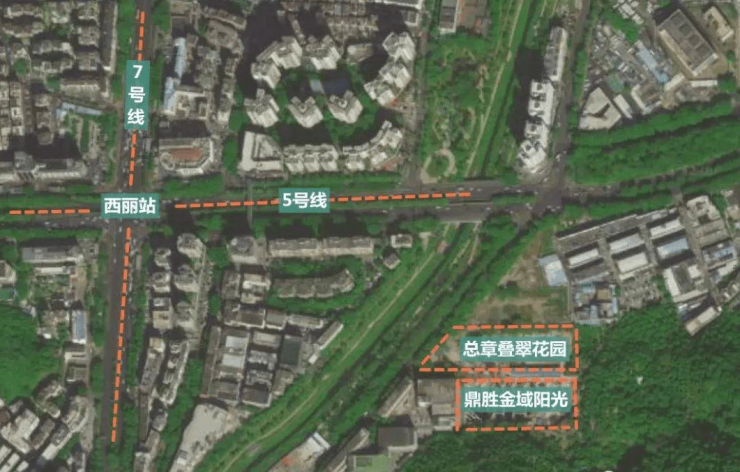 项目西侧为西丽留仙洞总部基地,东北侧为大学城,东侧为塘朗山,西南侧是西丽高铁站。