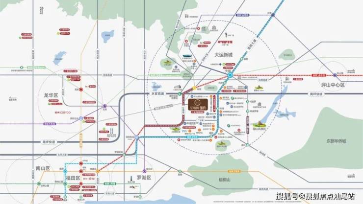 周边环绕龙岗大道、水官高速、南坪快速等主干道,形成“五纵四横”路网结构,自驾便捷。