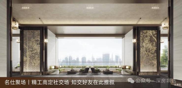 源聚名门圈层——高奢会客厅:园林内打造六大功能会客厅,满足家庭休闲、亲子乐趣、会客访友、运动健身等多元生活场景所需。