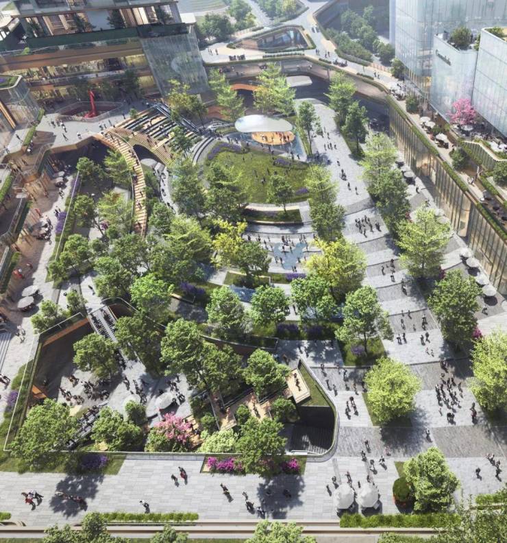 商业由国际设计师事务所Lead8和日本室内设计师事务所PINHOLE联袂设计。以“从公园走到城市”为设计理念,打通城市慢行绿廊,轻松漫步福田体育公园、高尔夫公园、十五公里滨海长廊,自然、商业与人无间融合,像极了当年美国的高线公园,相当快意人生