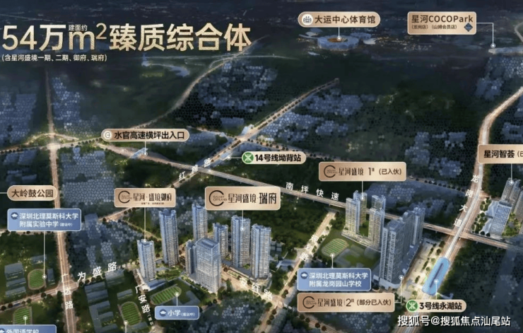 37载征程,星河在深圳打造星河国际、星河丹堤、星河WORLD等多个标杆项目,实力享誉深圳,引领城市美好生活。星河深耕龙岗大运及门户片区,打造星河时代、星河智荟、星河盛境一、二期,以及盛境御府等住宅精品,备受市场口碑赞誉。