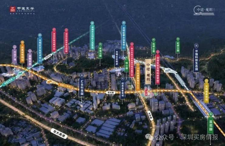 光明城高铁站,也是广深港高铁线和赣深高铁进入深圳的第一站,周边还邻近观光路,光侨路,深圳外环高速,龙大高速等主要交通要道。