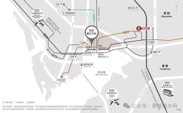 海陆空轨TOD枢纽速联全球商务2/9/11号线三线地铁环绕,紧邻地铁29号线(规划中)及穗莞深、深莞城际轨道,形成6轨6站交通网络。◎海:9站到蛇口湾(2号线)、8站到太子湾邮轮母港(11、12号线)◎陆:3站到深圳湾口岸(11、13号线),6站到福田口岸(11、1、4号线)◎空:6站到宝安国际机场(11号线)◎轨:2站到高铁福田站(11号线),11站到深圳北站(11、1、4号线)