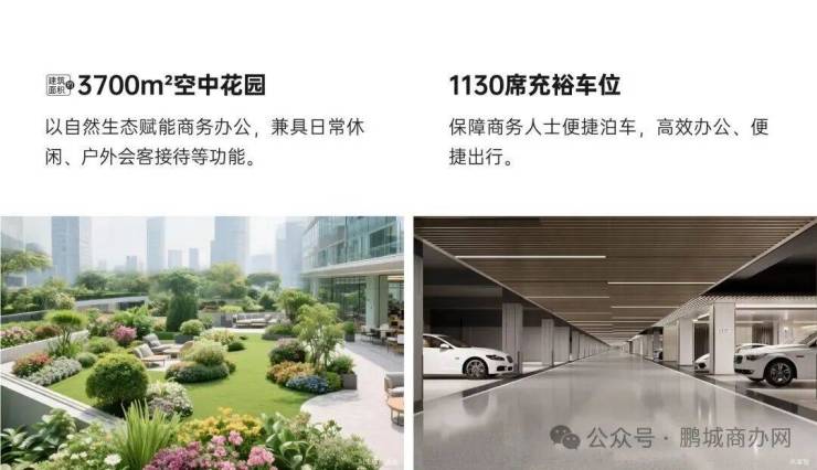 绿色商务:LEED + WELL 双金级认证、悦享深圳最高新风量、约𝟑𝟕𝟎𝟎㎡空中花园
