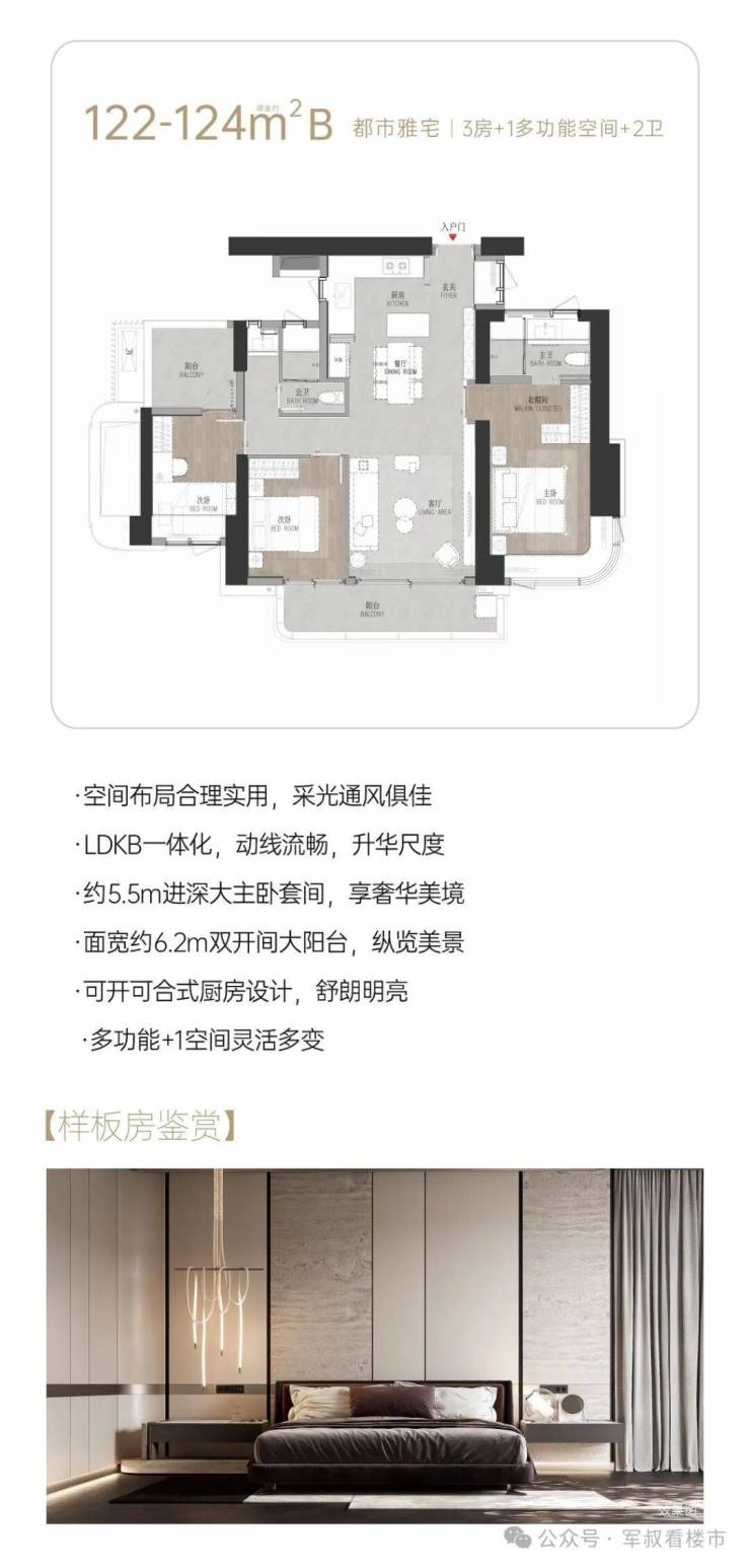 主推面积:111平 (三房两卫)122-124平3+1多功能空间,整体均价¥10.7 万/平(22楼~58楼可选)